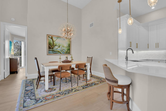For this total condo transformation, The Limitless Designer delivered a refined coastal retreat that balances modern sophistication with thoughtful functionality. Every inch of this Florida home was reimagined—from the wood-look tile flooring and custom solid wood pocket doors to the new impact windows and energy-efficient LED lighting throughout.